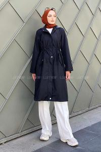 Modalamelif Kol Katlamalı Kapşonlu Trenç Siyah
