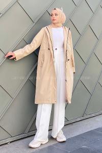 Modalamelif Kol Katlamalı Kapşonlu Trenç Taş