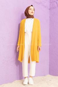 Modalamelif Kol Katlı Krep Uzun Hırka Hardal Sarısı