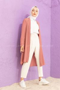 Modalamelif Kol Katlı Krep Uzun Hırka Pudra