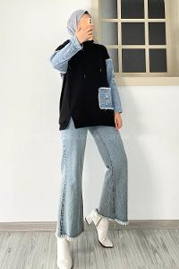 Modalamelif Kol Kot Garnili Sweatshirt Siyah