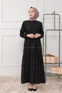 Lamelif Taş Detaylı Tesettür Elbise Siyah