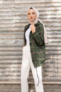 Modalamelif Kol Lastikli Ekose Desen Ceket Haki