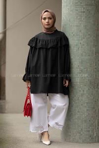 Modalamelif Kol Lastikli Fırfır Nakışlı Tunik Siyah