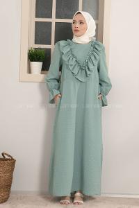 Lamelif Elica Tesettür Elbise Mint Yeşili