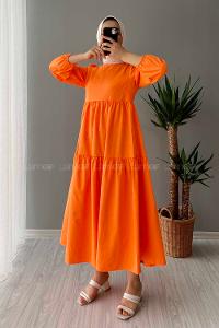 Modalamelif Kol Lastikli Fırfırlı Elbise Oranj