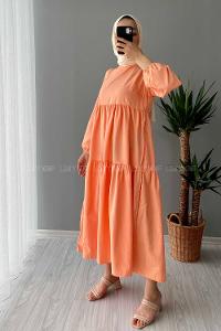 Lamelif Balon Kol Katlı Tesettür Elbise Acı Kahve