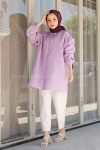 Modalamelif Kol Lastikli Fırfırlı Gömlek Mor