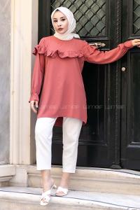 Modalamelif Kol Lastikli Fırfırlı Tunik Gül