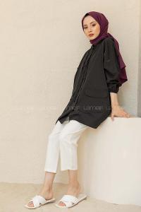 Lamelif Omuz Vatka Detaylı Tesettür Gömlek Siyah