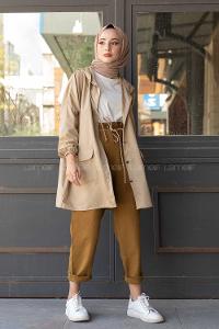 Ön düğmeli, kapşon yaka kol lastikli, çift cep detaylı Kap.