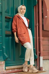 Ön düğmeli, kapşon yaka kol lastikli, çift cep detaylı Kap.