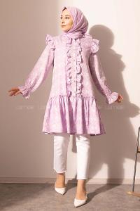 Modalamelif Kol Lastikli Kilim Desen Tunik Lila