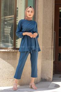 Modalamelif Kol Lastikli Kuşaklı Takım İndigo