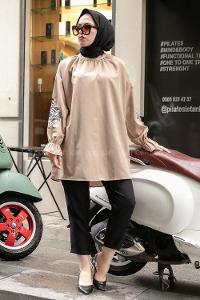 Modalamelif Kol lastikli Nakış Detaylı Camel