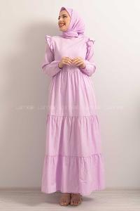 Modalamelif Kol Lastikli Omuz Fırfırlı Elbise Lila