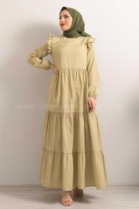 Lamelif Elica Tesettür Elbise Taş Rengi