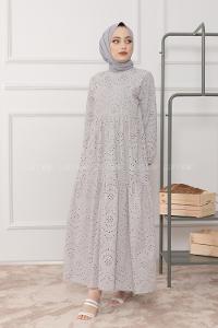 Modalamelif Kol Lastikli Papatya Dantel Elbise Gri