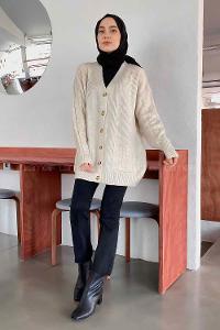 Lamelif Kol Örgü Detaylı Hırka Bej