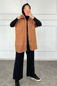Modalamelif Kol Püsküllü Önü Çıt Çıt Düğmeli Gömlek Camel