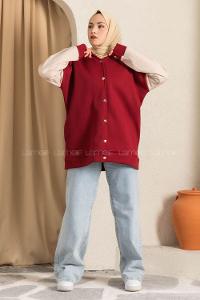 Modalamelif Kol Renk Garnili Çıtçıt Düğmeli Çift Cepli Kolej Hırka Bordo