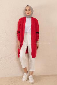 Modalamelif Kol Şeritli Triko Hırka Kırmızı