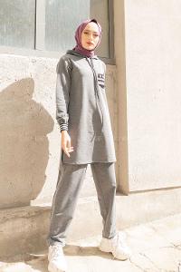 Modalamelif Kol Sim Şeritli İkili Takım Füme