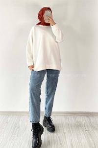 Modalamelif Kol Ve Etek Ucu Manşetli 3 İplik Sweat Ekru
