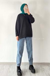Modalamelif Kol Ve Etek Ucu Manşetli 3 İplik Sweat Siyah