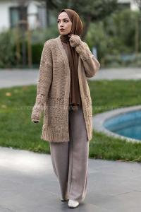 Modalamelif Kol Ve Sırt Detaylı Triko Hırka Bej