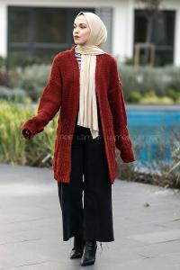 Modalamelif Kol Ve Sırt Detaylı Triko Hırka Kiremit