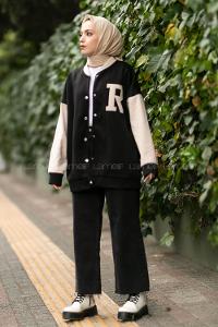 Modalamelif Kol ve Yaka Garnili R Nakışlı Kolej Hırka Siyah