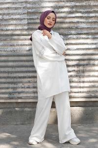 Lamelif Üç İplik Kanguru Cep Sweatshirt Beyaz