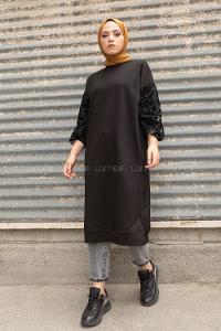 Modalamelif Kolu Flok Tül Tunik Siyah
