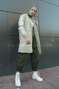 Lamelif Omuz Filetolu Kol Apoletli Kaşe Kaban Taş Rengi