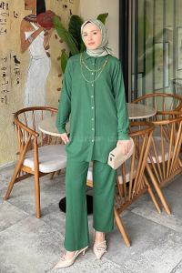Lamelif Kolyeli Bürümcük Tesettür Takım Yeşil