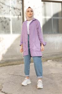 Modalamelif Körük Cep Kadife Gömlek Lila