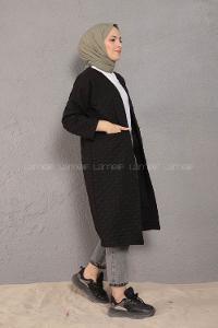Modalamelif Körük Cepli Jakarlı Uzun Hırka Siyah