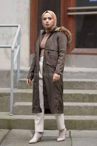 Modalamelif Körük Cepli kapşonlu Mont Haki