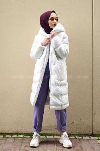 Lamelif Bağlama Detaylı Kapitone Mont Beyaz