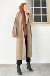 Modalamelif Körük Çift Cep Uzun Triko Hırka Kum Beji