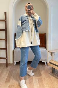 Modalamelif Kot Garnili Ceket Taş Rengi