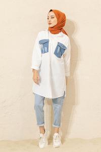 Lamelif Omuz Vatka Detaylı Tesettür Gömlek Beyaz