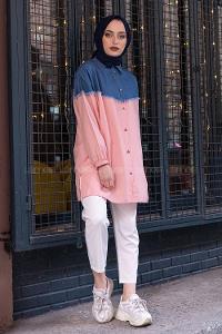 Modalamelif Kot Garnili Poplin Gömlek Pudra