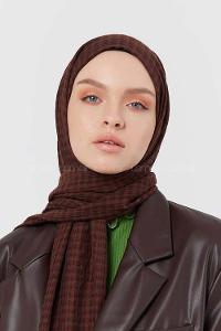 Modalamelif Kraş Pamuk Ekose Desenli Şal Acı Kahve