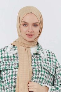 Modalamelif Kraş Pamuk Ekose Desenli Şal Bej