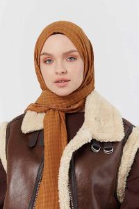 Modalamelif Kraş Pamuk Ekose Desenli Şal Hardal Sarısı
