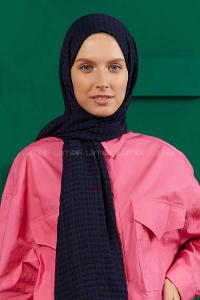 Modalamelif Kraş Pamuk Ekose Desenli Şal Lacivert