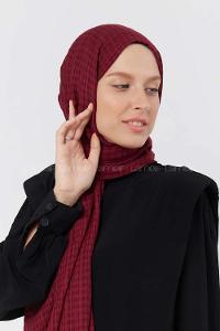 Modalamelif Kraş Pamuk Ekose Desenli Şal Mürdüm