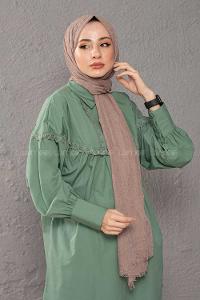 Lamelif Batik Desen Müslin Şal Vizon Yeşil